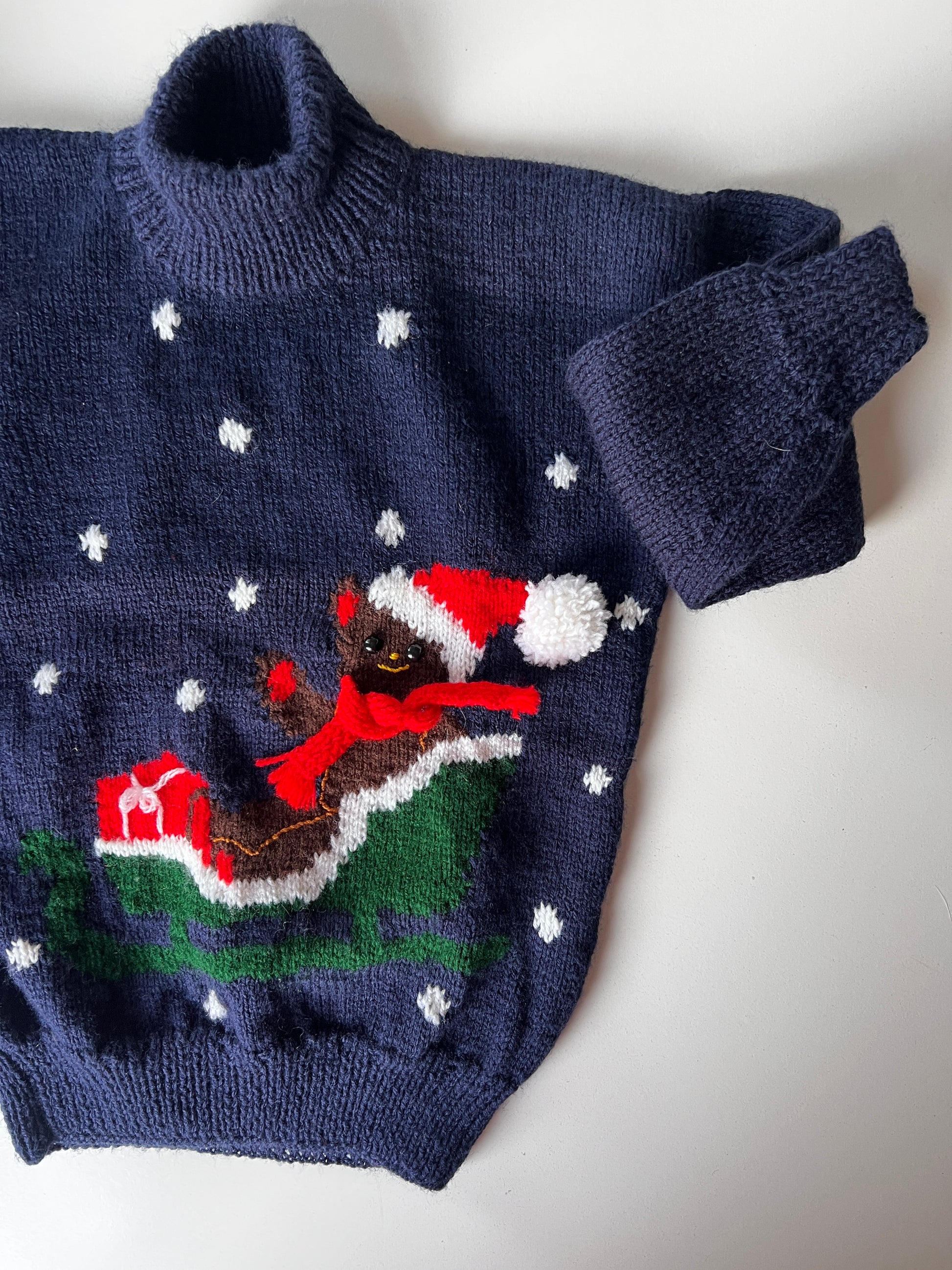Kids Vintage Hand Knitted Bear Jumper Size 5-6 Years